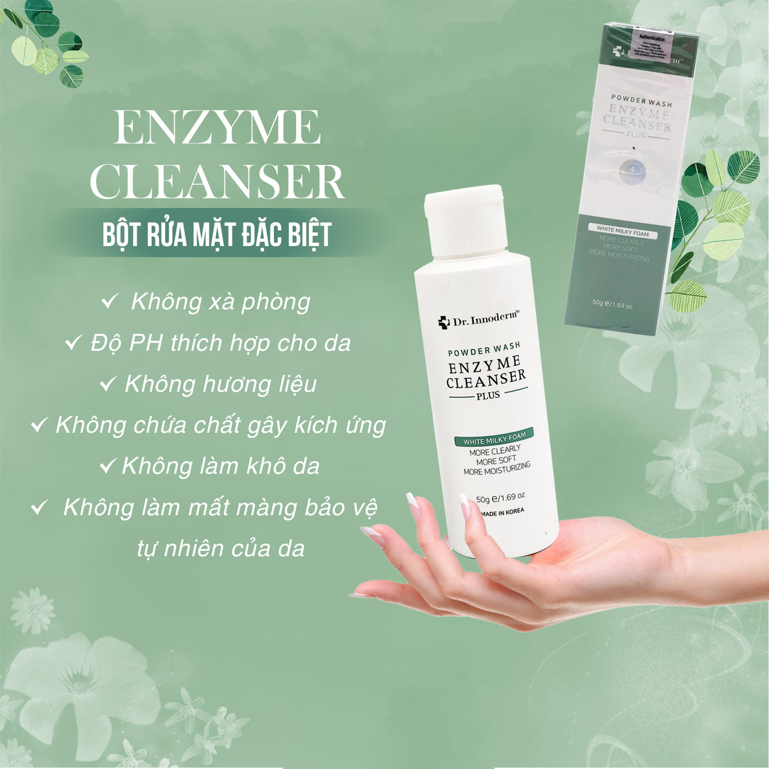 [Dr.Innoderm]_Sửa rửa mặt dạng bột_Enzyme Cleanser 50g_Sản phẩm chính hãng_Xuất VAT 100%